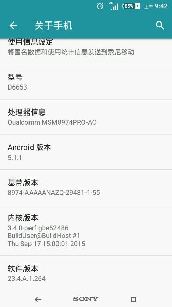 因为忍受不了国行Z3没有更新了,所以去索尼手机售后让工作人员用官方的软件刷成了港行D6633,4G可以用,没问题。不知怎么的,工作人员当时虽然是把我刷的5.1.1但不是最新软件版本,当天下午收到一个系统更新,升至23.4.A.1.232,后来去Xperia香港官网看D6633已经升至23.4.A.1.264,现在一个月过去了还没收到264的更新,我开始慌了,我还准备升6.0呢。
