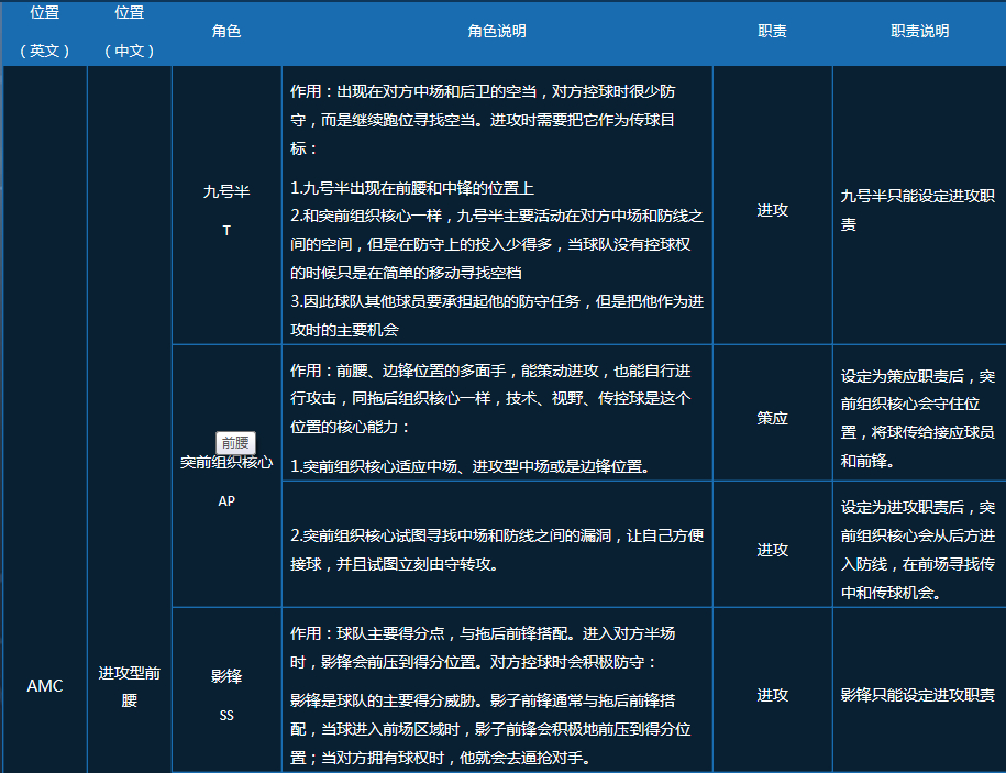球员角色定位——前腰