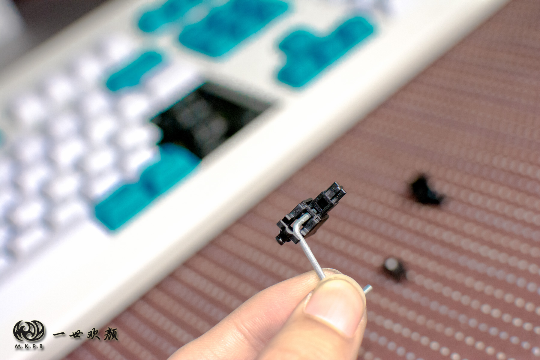 第一次拆装键帽的时候难免用力过猛把大键位卫星轴为拔出来了,