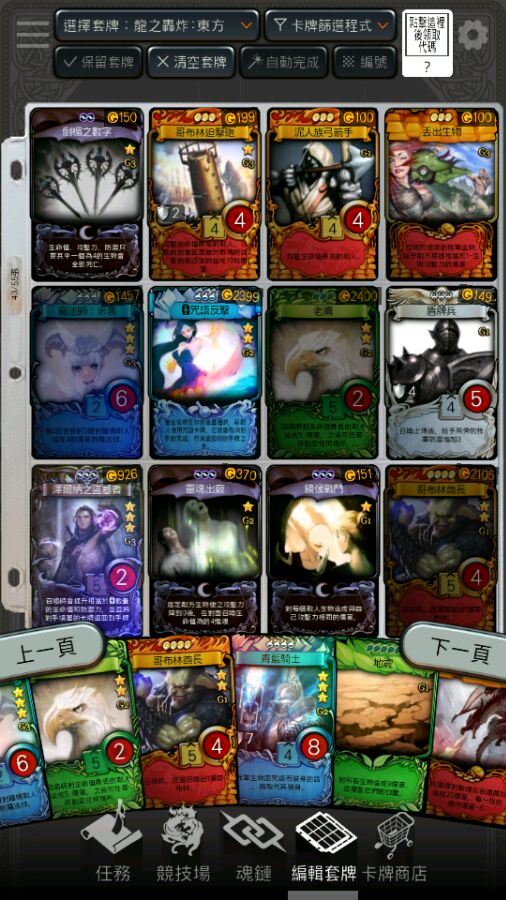 同新人给点意见,看你想挂机还是自己打。挂机推荐红白税金龙骑士轰炸配莎莎或者火圣之类,手打就三色随意吧,能有死刑就好,没有就地狱门。吸血鬼蛮族之流,中型生物挑好的。大咒语一般不带。有绿就带狩猎和进化茧,大概就差不多
