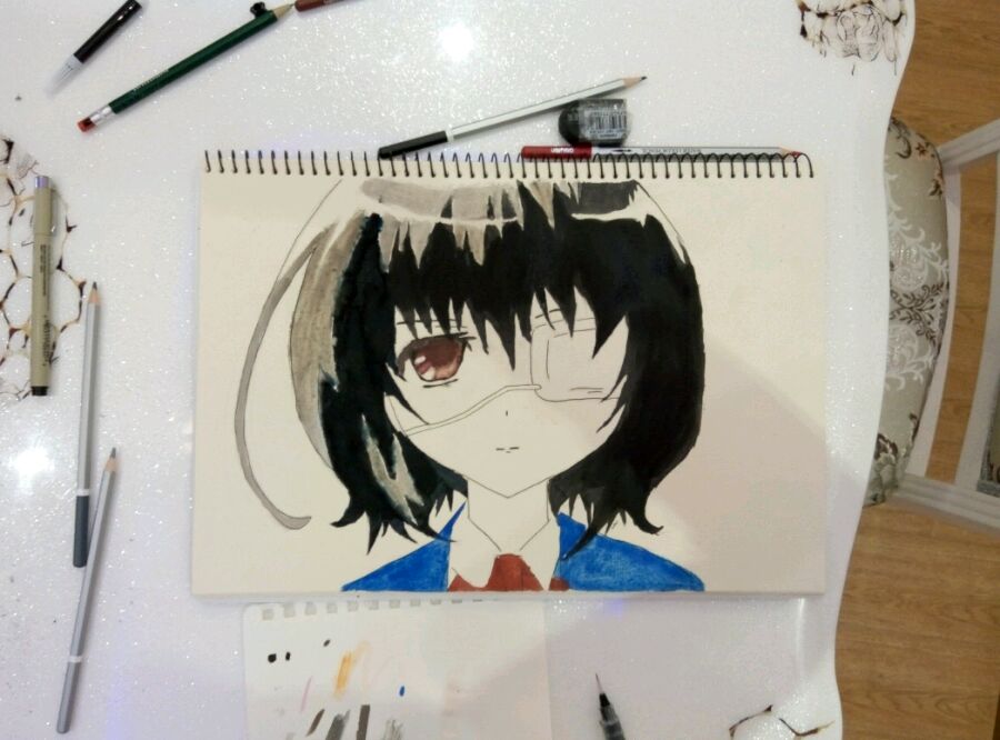 第一次用干水彩,还作死用小孩子涂鸦用水彩笔涂头发,纸都差点破了。。。