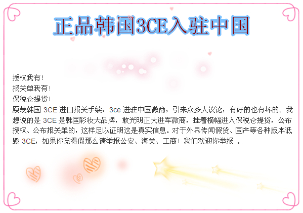 自信的【韩国3CE】
