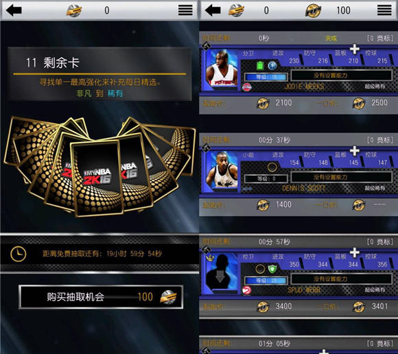 玩家在初入《MyNBA 2K16》时,很快就可以上手。游戏的核心对战模式是五个队员轮番上场,比拼数值,按照各节对战的结果决定胜负,同时提供两张卡牌组合的快速对战模式。而最新加入的街头比赛模式,还可以让玩家增加获得传奇卡牌的机会。在游戏中最为重要的RP值,则相当于游戏中流通的货币,玩家购买牌包,在拍卖行进行拍卖等等行为,都需要足够RP值的支撑。如果玩家参加赛季模式,足够的体力也是完成赛季的必需品,这时候,RP还可以用来购买体力,为玩家快速充能。