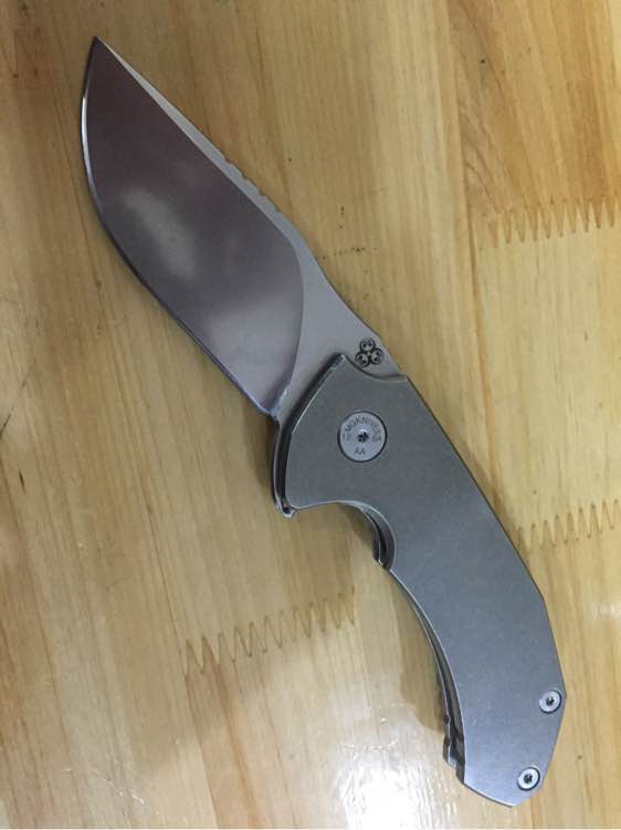 n690刀刃 tc4柄材 208g重 唯一缺点是 钛夹力道不够 挂腰带感觉不牢靠 三张收的二手