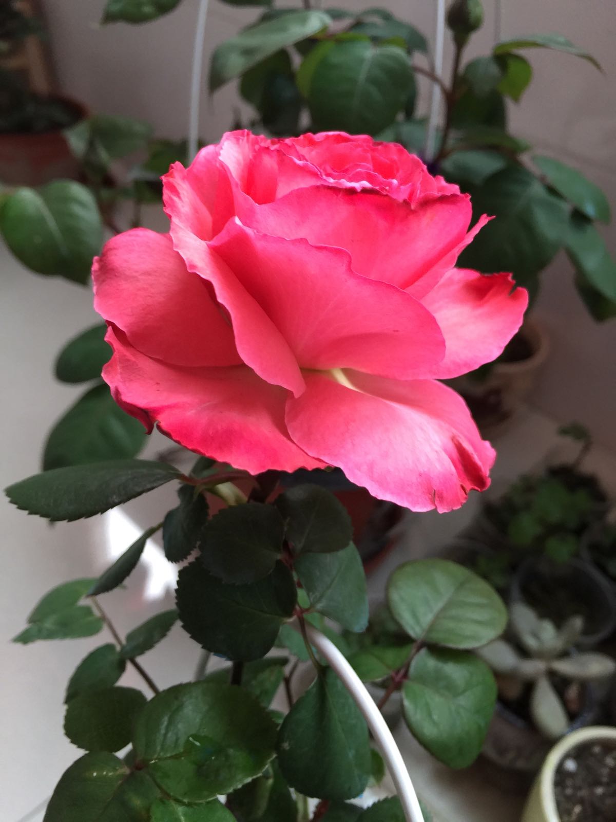 是我去年路边看到用月季做篱笆然后折下来的 现在第一次开花了 有香味初花也不小七厘米有的 应该是某种国月 请问是什么