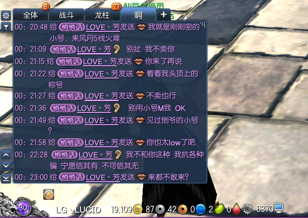 楼主在用小号做副职业,看到1个骚年卖东西,就M了他,怕他觉得我是骗子,我就发了我的一些材料,然而他还是觉得我是骗子,于是,我开始慌了