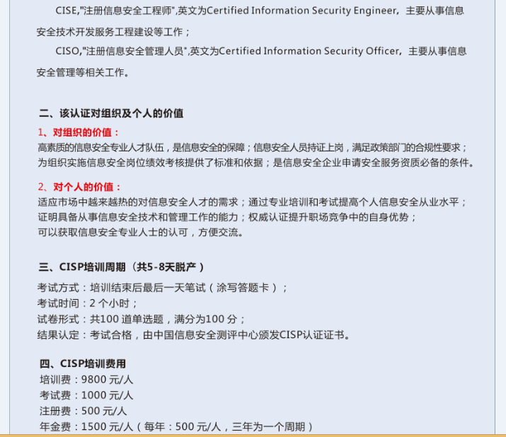 5. 满足注册信息安全专业人员(CISP)注册要求并成功通过注册信息安全专业人员(CISP)注册审核;