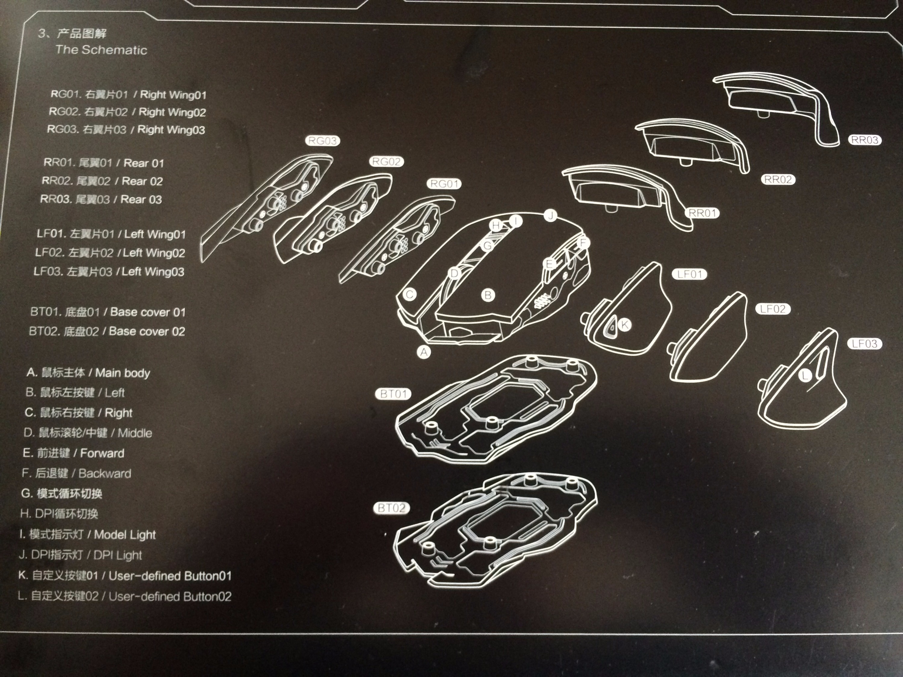 对了,鼠标的底部中间的深色区域上有很多划痕,不知道怎么回事