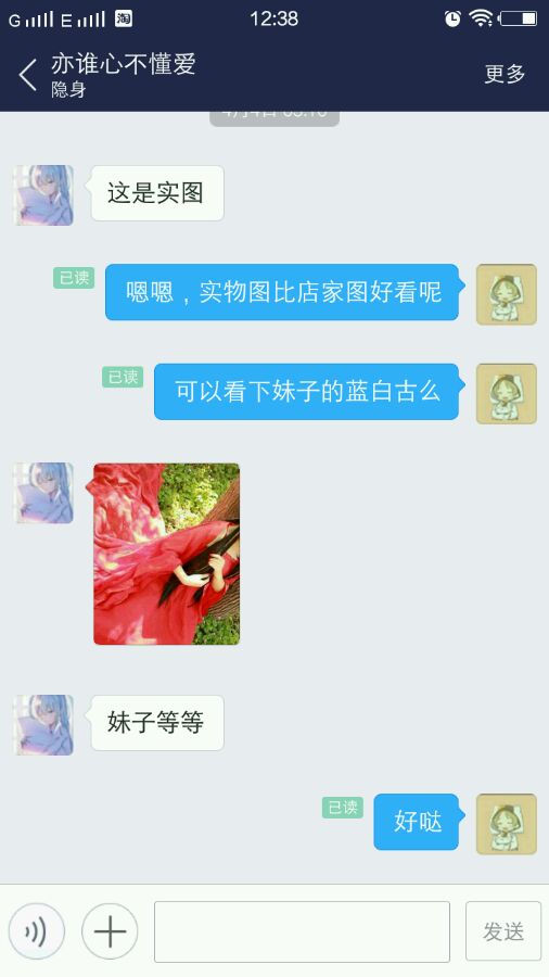 开始讲故事:在一个夜深人静的夜晚,宝宝开始在古装cos交换吧挂换物贴,(不要问我那个贴在哪里!度娘抽了我百分之八十的楼层!一怒之下宝宝直接删贴了!)然后这个骗子问我韶华湾那套衣服有爱无?虽然他是第一个回复我的,但是衣服真的没爱啊!遗憾说了果咩之后,妹子说我还有其他衣服可以看看有没有爱,黄古红古蓝古两套白古还有一套蓝葵(这个蓝葵是其他被骗妹子的蓝葵,骗子那些衣服,除了韶华湾,基本都是其他妹子的)来来来,认娃时间到都找找自家娃是哪个😂😂😂
