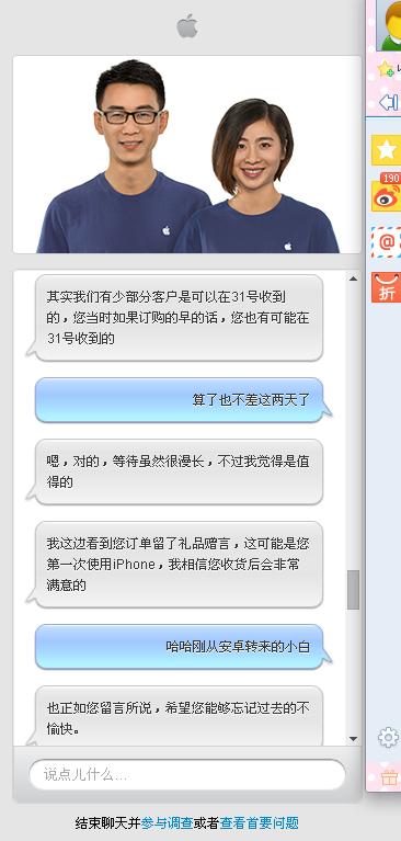 下午跟苹果客服咨询订单问题,发现原来客服不仅仅是提供产品帮助,还会和人聊天,太暖了都。