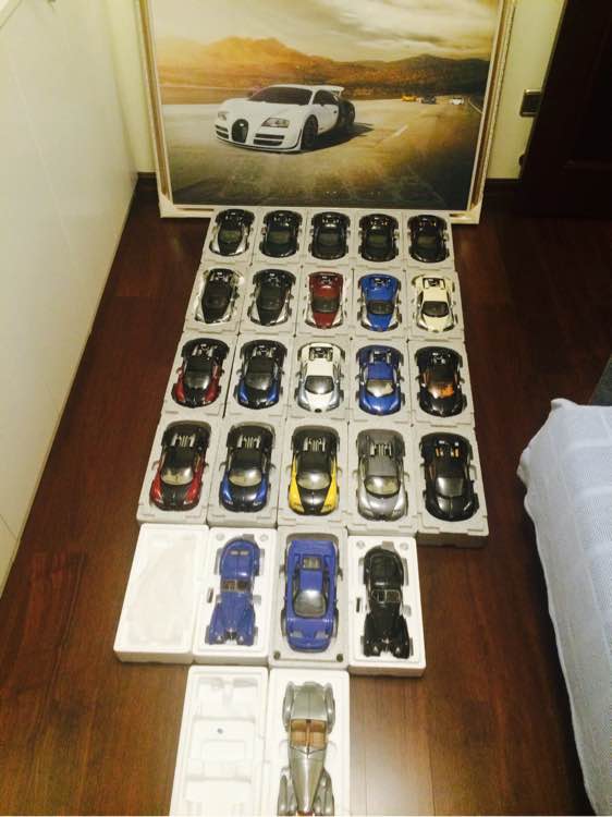 久违的拍照了。实在是平时很忙。今天父母帮我一起搬到新的家(20多台吧),实在是太沉了。我的模型屋还没有完全做好,所以不能出盒摆柜子里了。今天我就想拍一个完整的布加迪合集,说了好久了就是没有时间,今天也算是完成了一个小心愿吧。有人爱马、有人爱牛、有人爱豹子。可是我情有独钟的爱龙。因为它那强有力8.0L W16 四涡轮增压发动机,极速可达434 km/h。外貌虽然没有其他超跑有那么犀利的线条,而且显得很臃肿。但是自从看到它第一眼就深深的被它所吸引,然后慢慢的去深入了解这个品牌!我希望与大家分享我的最爱。