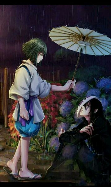 一直以为打伞的是白龙。是白龙还是千寻?另一个是无脸男。我忘了是谁说过的无脸男其实挺好的。他喜欢无脸男
