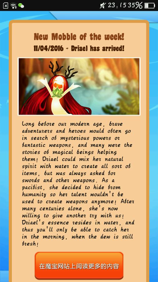 在我们现代,勇敢的冒险家和英雄经常在神秘的力量和神奇的武器,搜索,和许多神奇的人帮助他们的故事!driael可以配合她自然精神与水创造各种物品,但总是问剑和其他武器。作为一个和平主义者,她决定隐瞒人类所以她的人才不会被用来制造武器了!在许多世纪之后,她现在愿意再尝试一次!driael的本质在于水,因此你只能在早上赶上她,当露水还很新鲜!