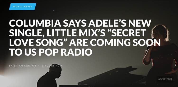 COLUMBIA SAYS ADELE’S NEW SINGLE, LITTLE MIX’S “SECRET LOVE SONG” ARE COMING SOON TO US POP RADIO