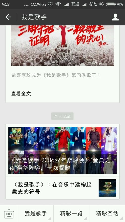 微信订阅号里刚收到消息 容祖儿强势回归 记得准时收看