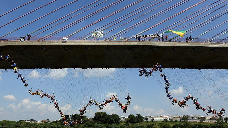 【图片】巴西149名蹦极爱好者集体牵手跳桥「7P」