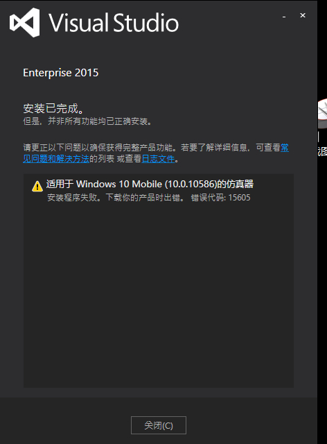 适用于Windows 10 Mobile(10.0.10586)的仿真器安装程序失败