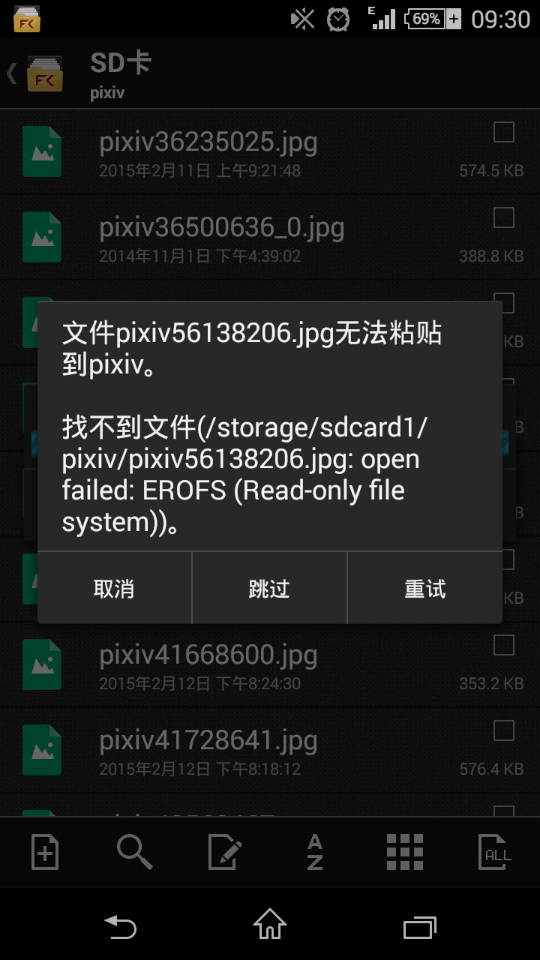 昨天上午照相还好好的,能存SD卡,下午就突然提示无法存储,空间不足,重启后好了,但是过一会儿又不行了。有时删除之前的照片也是慢的不行,这时候进file commander会未响应。有时候重启直接去查看存储设备,SD卡载入的很慢。现在不知道咋了,往SD卡里寸东西就提示这个