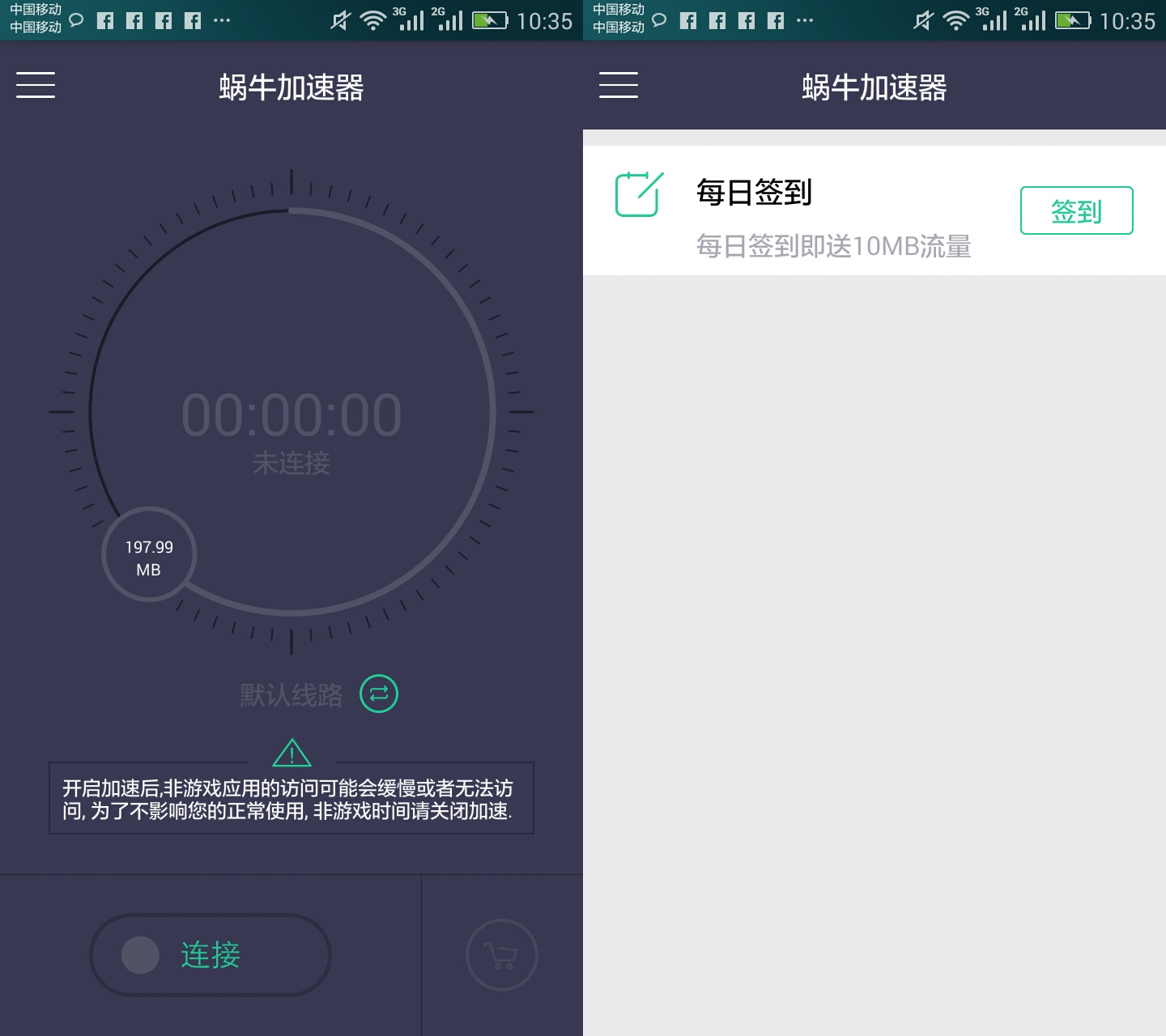 使用很简单,一点就连上了。新用户有送200M,安卓还有签到,有需求的推荐试试,没需求的就算了