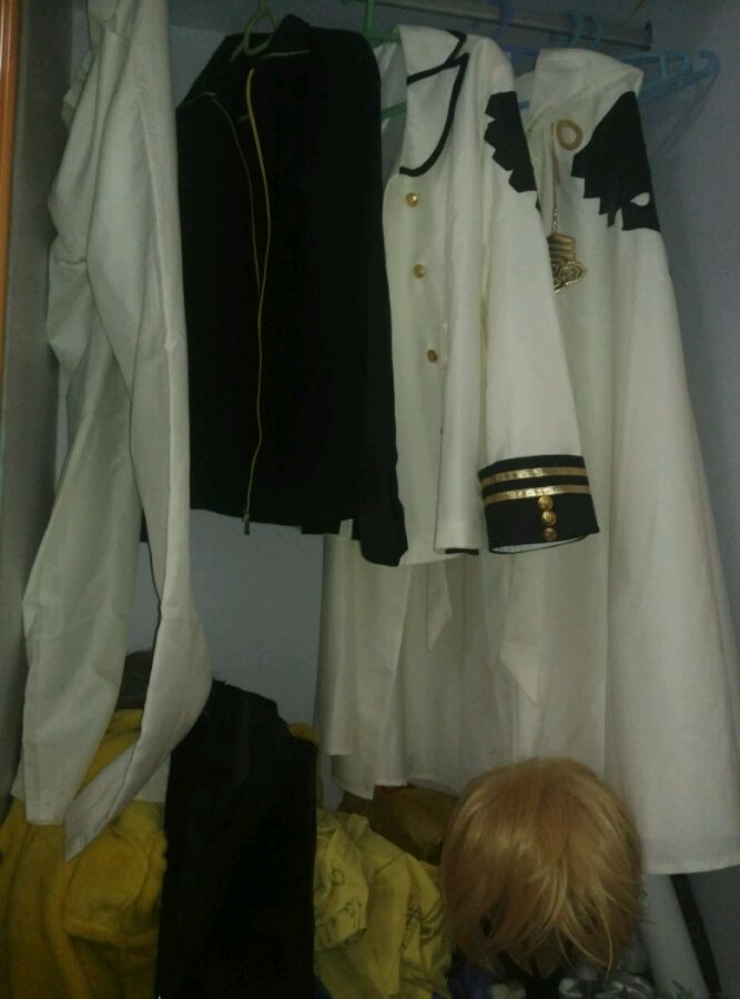XL码,只穿过一次!因为皮带什么的小零件被老妈扔了只剩图中外套衣服披风,还有假发和鞋子,含泪白菜价出了!250!