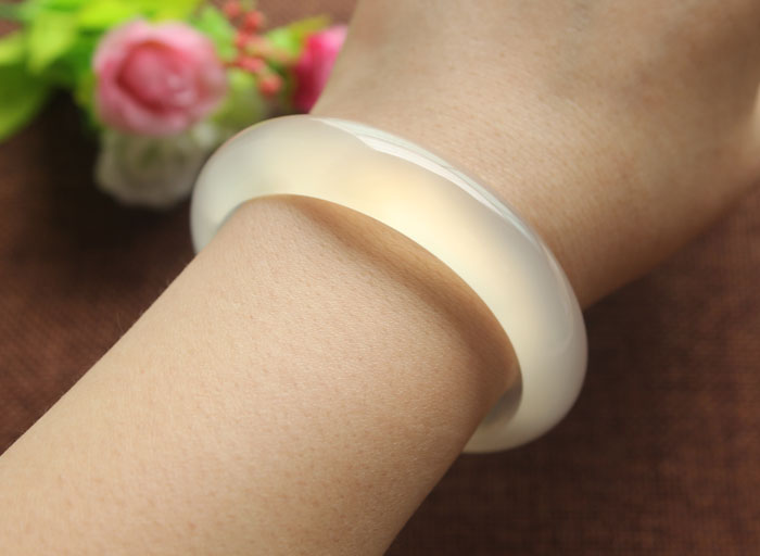 4.挽玉阁 纯天然马达加斯加精品兵种原色浅褐色玉髓手镯母亲节的礼物