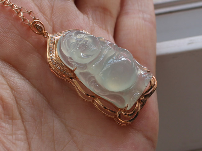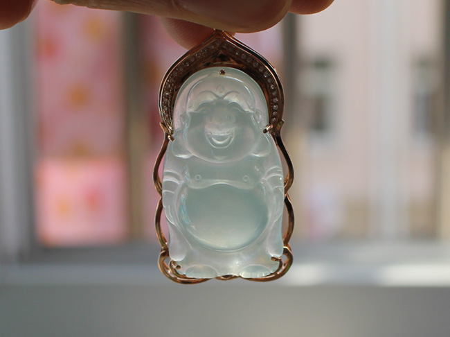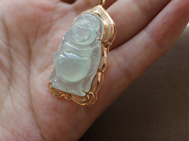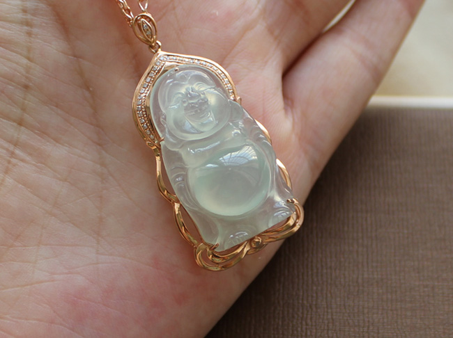 2.挽玉阁 绿色18k金镶嵌坐佛老冰种吊坠挂坠 翡翠A货 母亲节礼物