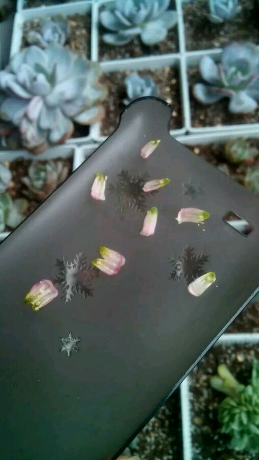 1、先把这个一株多肉授粉的花的雄蕊拔下来,放到盘子里,写好名称,做上标~~