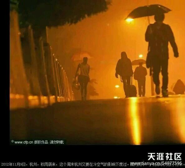 这是一张普通的杭州小雨新闻插图,但在图片中间,大家看一看,小哥回家了