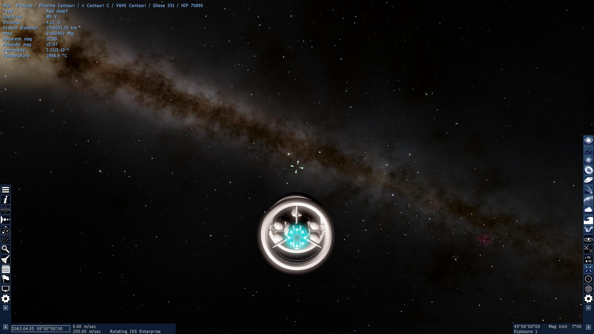 10年前,NASA重启了21世纪初已经被取消的类地行星发现者(Terrestrial Planet Finder,TPF)计划,并重命名为萨根类地行星探测器(Sagan Terra Explorer,STE,得名于美国天文学家、天体物理学家、宇宙学家、科幻作家,和非常成功的天文学、天体物理学等自然科学方面的科普作家卡尔·萨根 Carl Edward Sagan)。这一探测器本是用来探测较为暗淡的系外行星的,但是刚刚发射没多久它就做出了空间探索历史上最重要的一次发现——比邻星星环。比邻星星环的发现使得NASA决定开始建造IXS Enterprise。10年后,这人类的第一艘突破光障的载人飞船所执行的第一次任务就是前往比邻星系一探究竟。