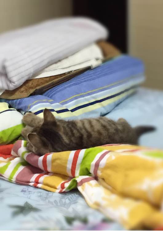 之后的一个星期,我基本没见到丫儿的影子,整天躲在我的洗衣机后面的角落里,要抓到它非得扫帚、和棍子一顿驱赶才能把它弄出来摸上两记,仔细看,其实小家伙还是挺标致,就是脏...毛摸着各种涩