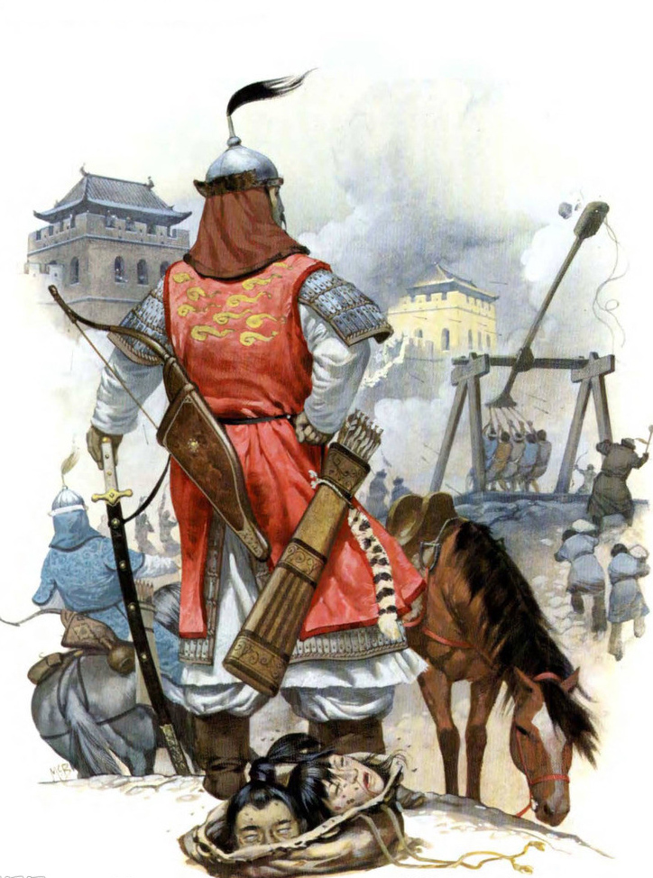 而在东方战场,1213年阳河谷之战,成吉思汗率军三万多众对十万金军。蒙古中路佯攻吸引了守军的全部注意力,包抄骑兵成功直插守军两肋和身后。是役金军损失八万人马。对中原的影响则莫过于结束了南北分裂的局面,再一次的实现了大一统,也使元朝成为中国史书上领土最大的朝代。