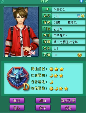 也就是小白 我回归神武第一个朋友 现在为损友 过几天他就出珍了