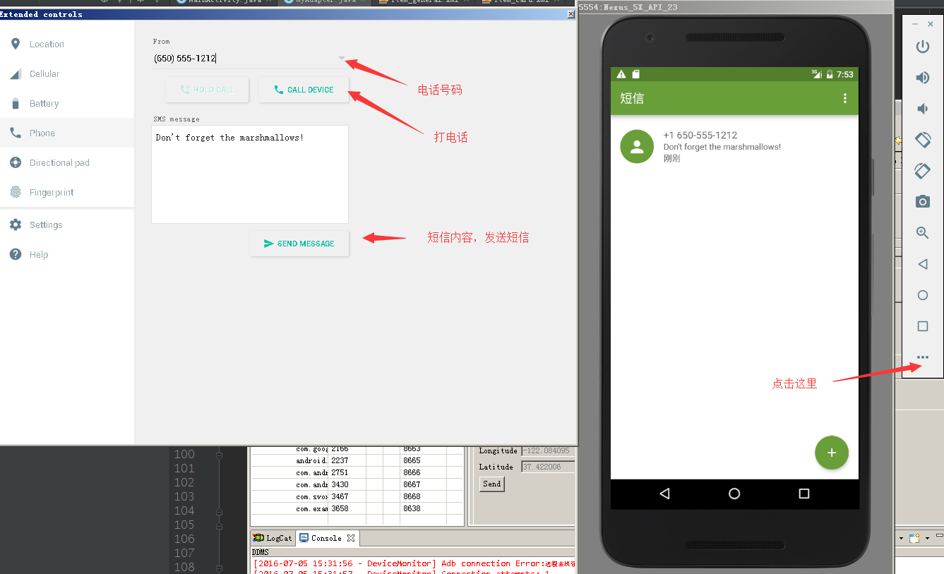 如下图所示: 我想测试打电话,发信息,但是那边一直是灰色的。求大神解答~~~~