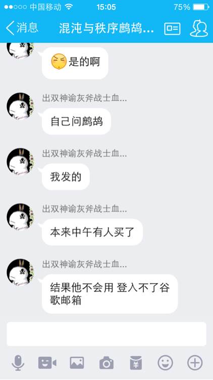 不是说不会弄,而是他不能弄手机说看不全,不知道鹧鸪为啥电脑登入不了,那是不是不会弄还是嫌麻烦。哎,所以我自己重开贴!估计买家也是二货,我帮买家弄到好,他偏要鹧鸪弄无语,而且那买家太费了,我想了下没人要就继续玩,现在去个和谐的公会了