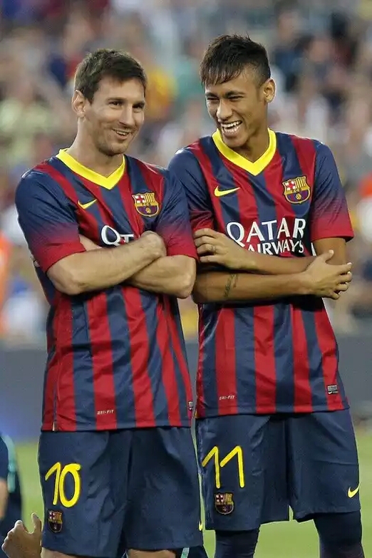 32岁的内马尔站在诺坎普上,满眼都是36岁的梅西