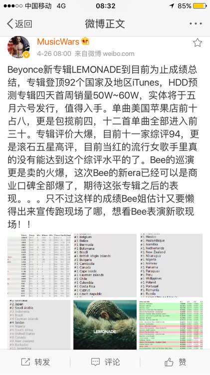 【Lemonade】转自微博,目前柠檬水成绩
