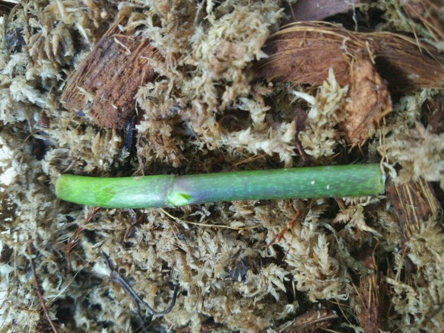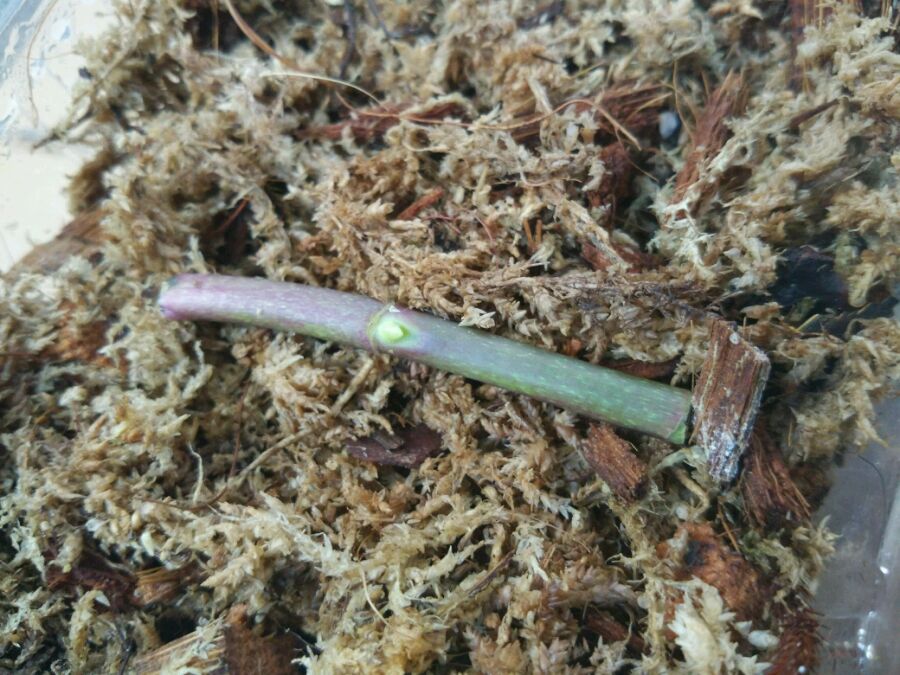 花茎剪下后晾干伤口,在芽节上涂了一点暴芽素。