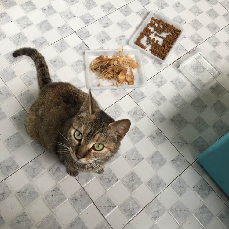 办公室因为要装修,临时搬到边上小区,上周一第一次搬来,就遇到了小区的一只流浪猫,特别亲人,于是我就把它带进电梯,它端坐在电梯里乖乖的,到八楼电梯门打开它就跟着我一起出来。我以前不敢碰猫的,这次摸了摸它的头,它表示非常开心,好温顺的猫咪啊。中午特意去吃鱼给它带了很多鱼。