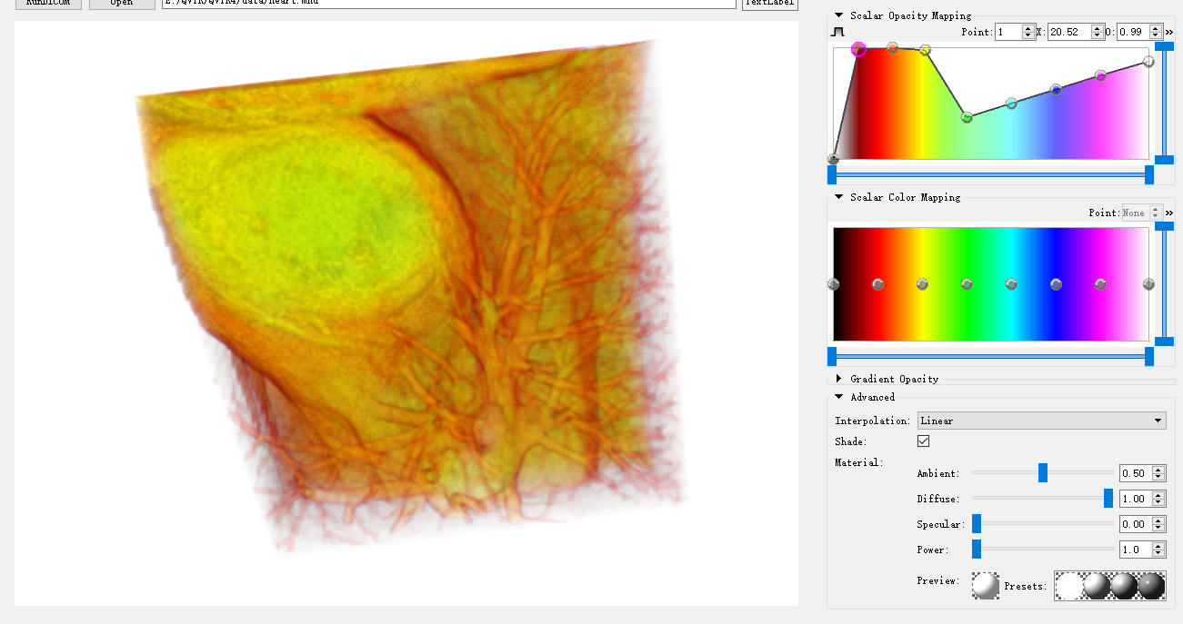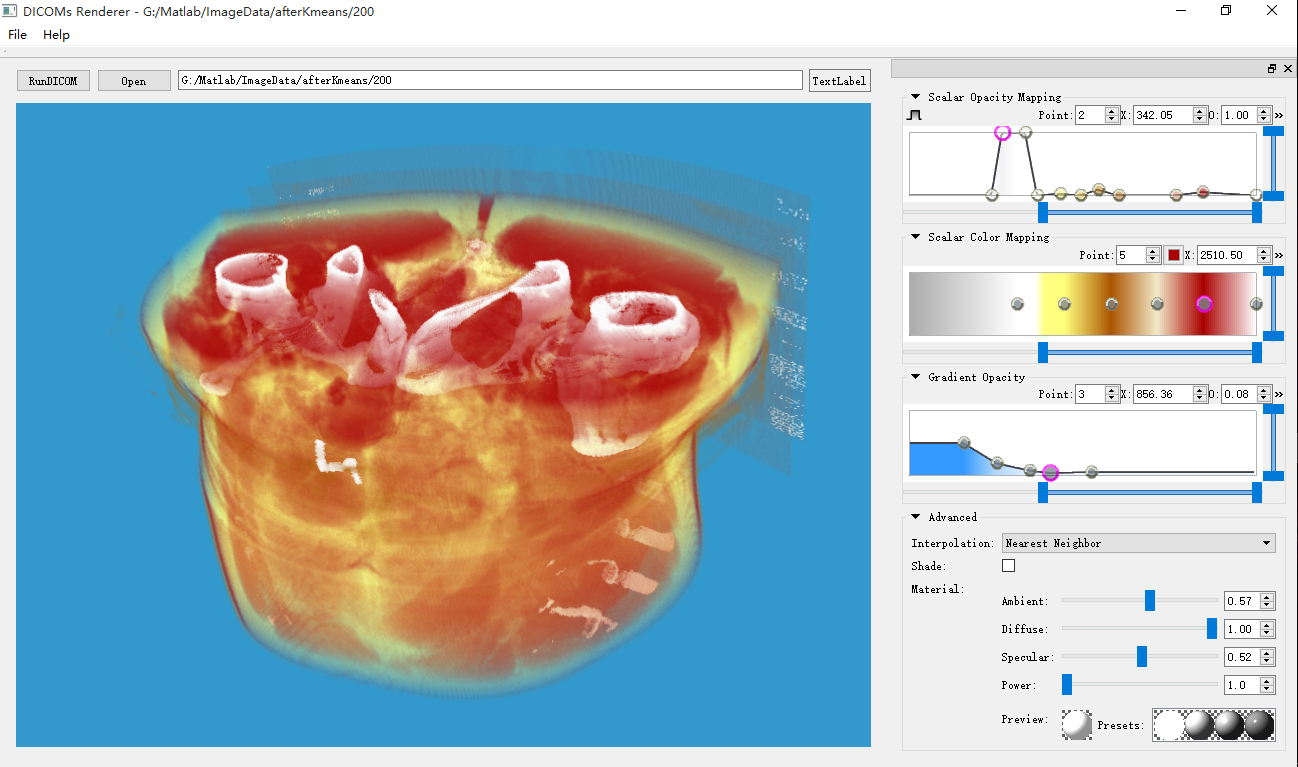 为了达到比较真实的显示效果,大家应该都是用的VTK的体绘制方法。