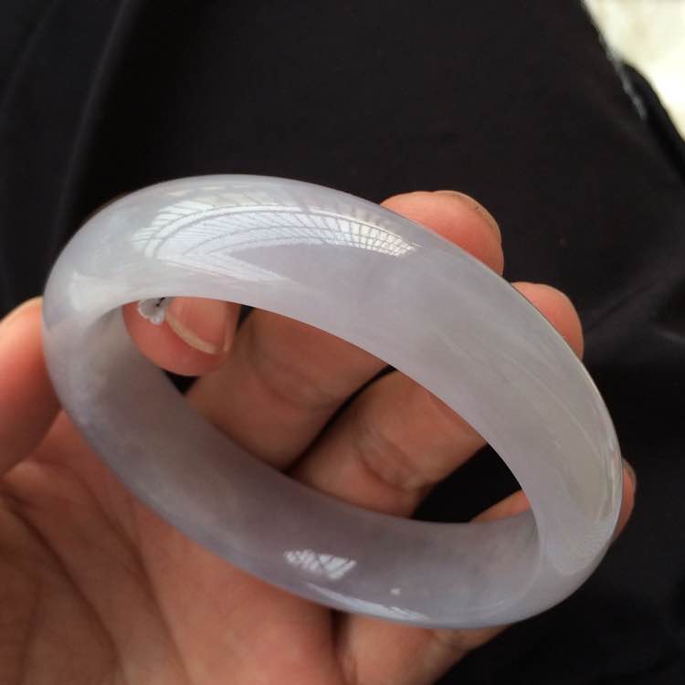 接近冰种微起光翡翠手镯,淡春色,整体肉质细腻,三围:56.6/15.6/8.2,价格:6800,