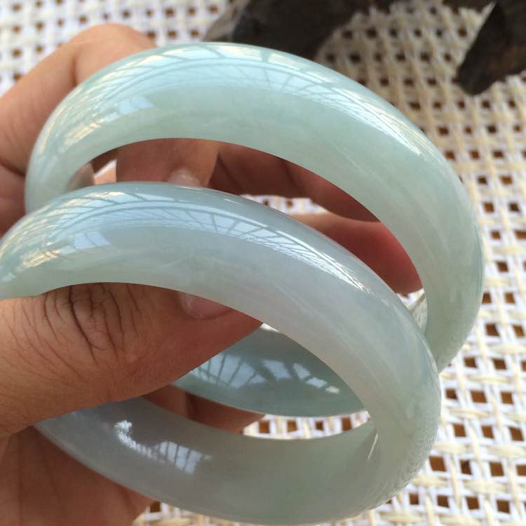 糯冰种浅晴翡翠手镯,肉质细腻,完美无瑕,三围:59/17/8.1,59/18.3/8.2,一对价:9000