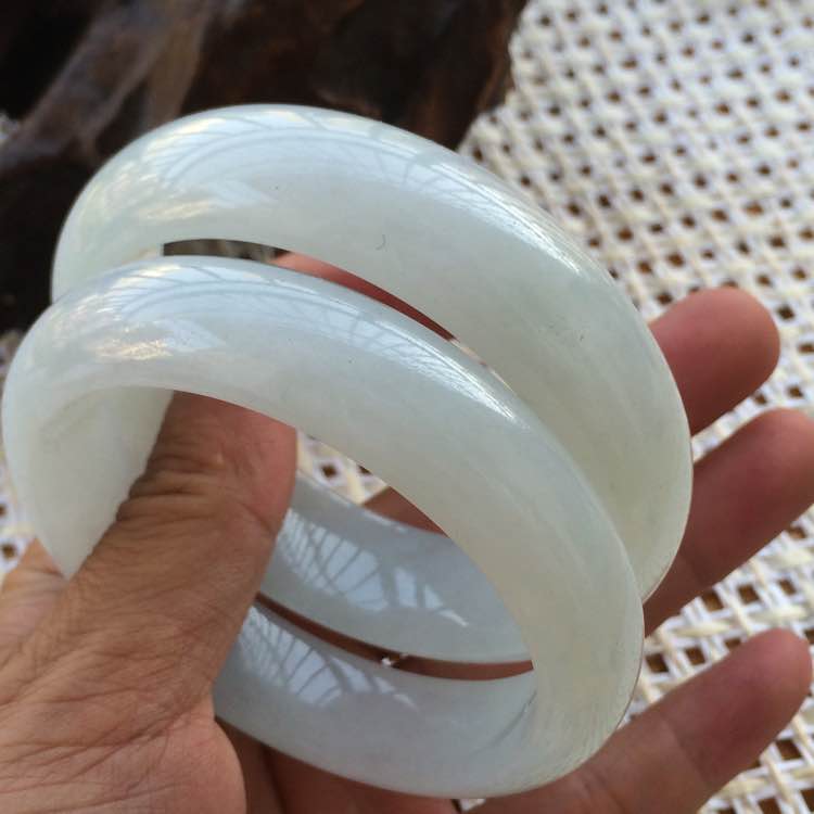糯冰种白色翡翠手镯,肉质细腻,完美无瑕,三围:58.5/17.5/8.5,56.2/15/8.4,一对价:7500
