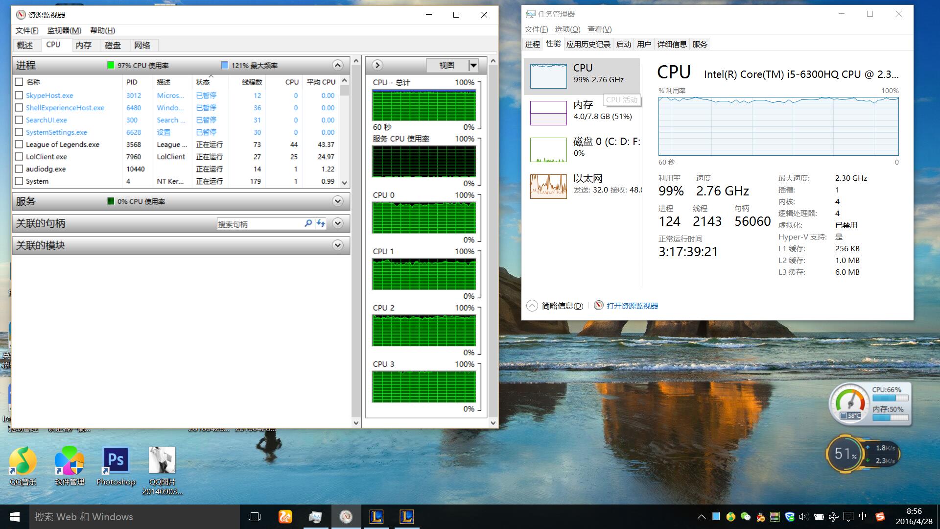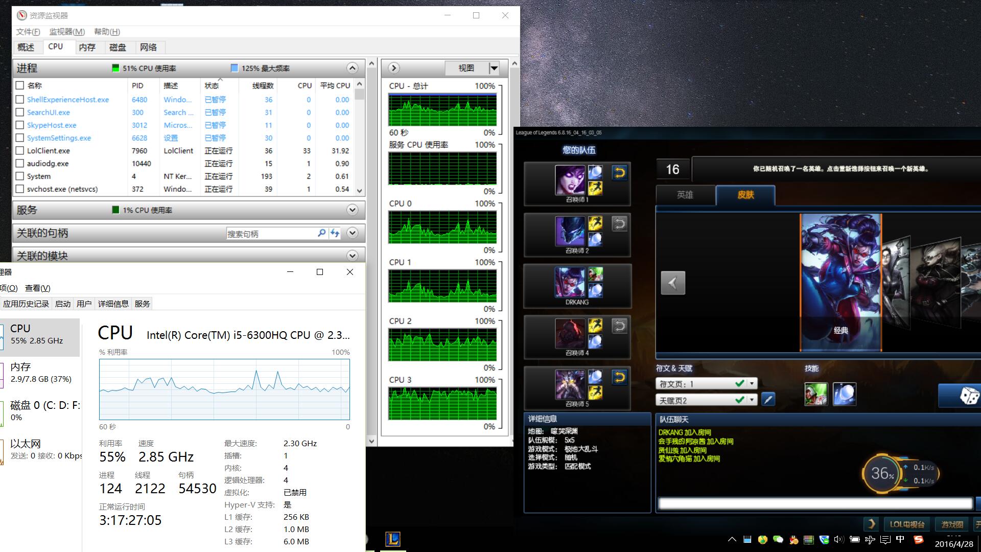【04-28】Y700-15ISK的i5-6300HQ的LOL实测-系统显示CPU过高?