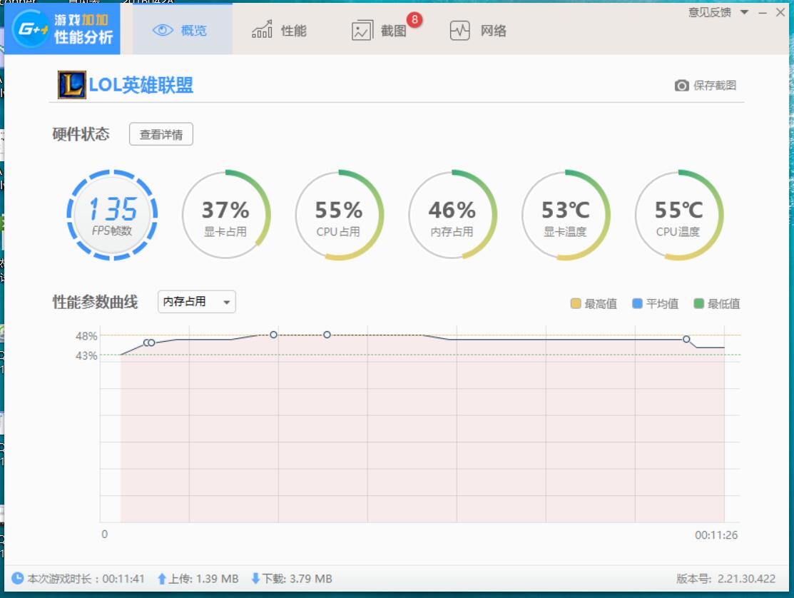 接着进入游戏时,看看系统显示的CPU性能,可以看到CPU占用很高呀,系统显示都会达到80到90的CPU占用率,而管家的显示70左右。