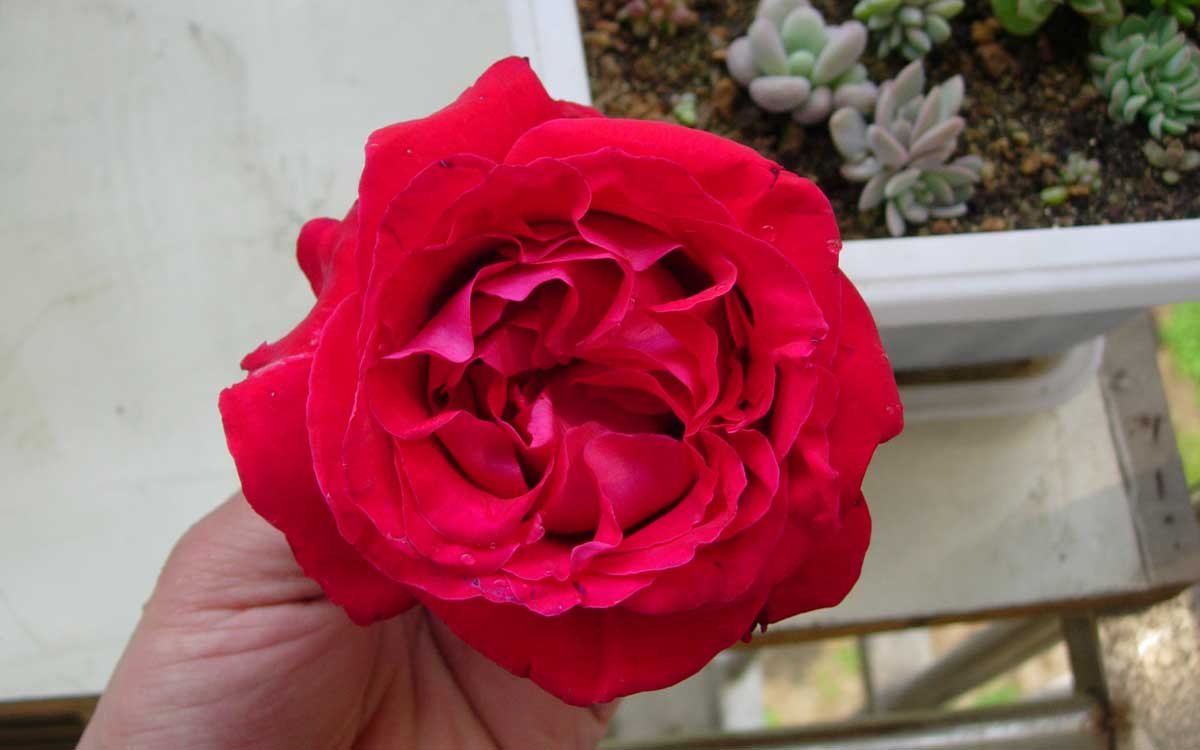 这朵大红花很香很好闻,不知道什么品种。掰了枝条回来扦插