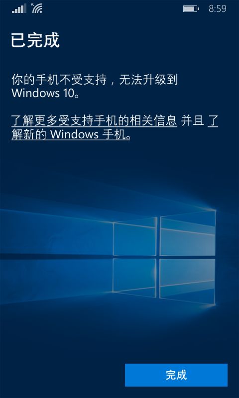 用升级顾问测试了一下,说Lumia 526不能升级win10M,