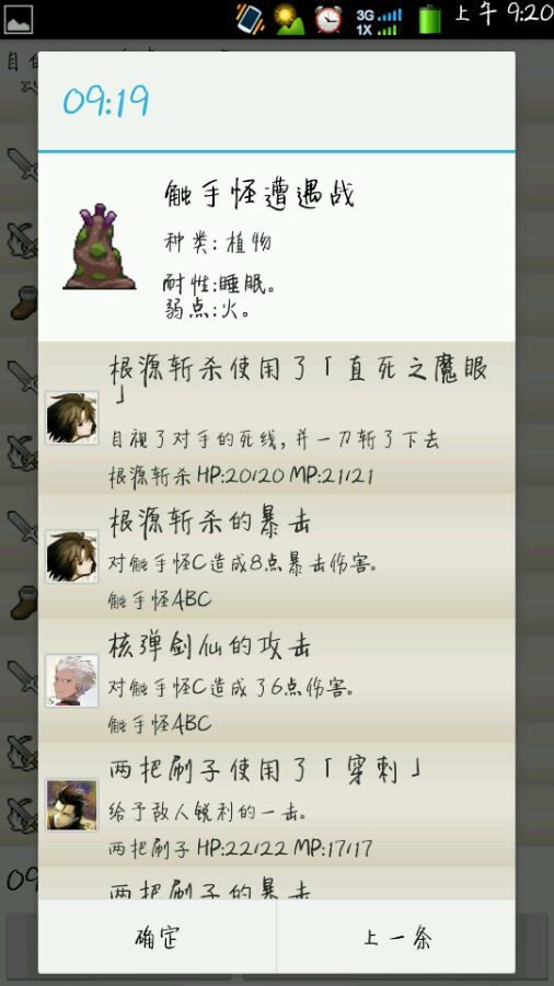 首先,初战我们遇上了一只蝙蝠,这当然不是我们横走三人组的对手,刷子还没出手战斗就已经结束了