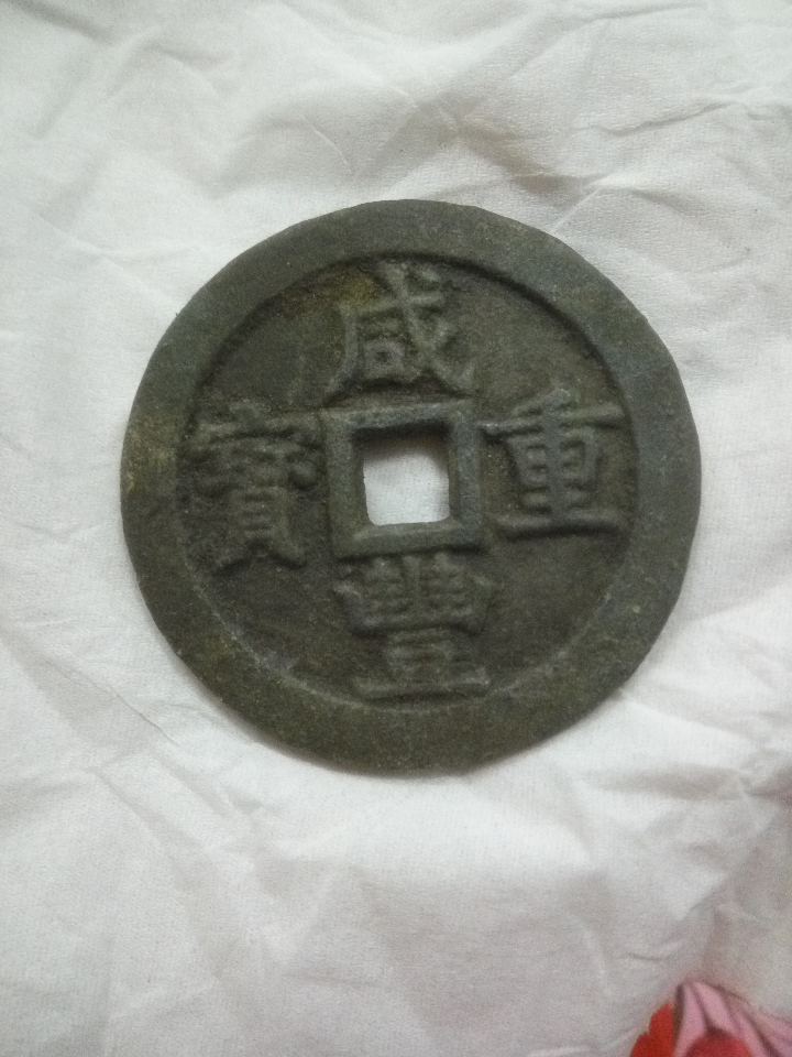 如图,咸丰重宝当五十锡钱,包浆厚实,直径约57
