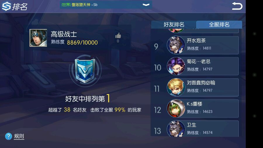 还好,我熟练度排名第一的秘密没被楼上的看到……