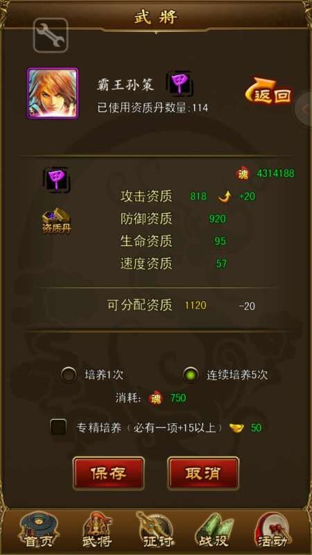 自从有了连续五次培养武将之后,也没有一个具体的培养方式说明,我今天兴趣来潮,特意拿小号做了下实验,给大家做下参考,希望能够给大家一下帮助!不喜勿喷!谢谢配合!
